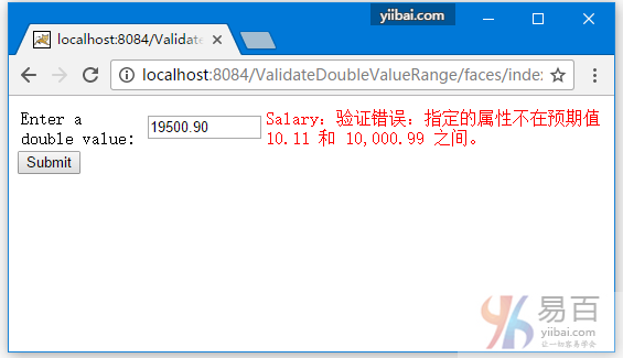 以下代碼顯示如何使用<f:validateDoubleRange>標記