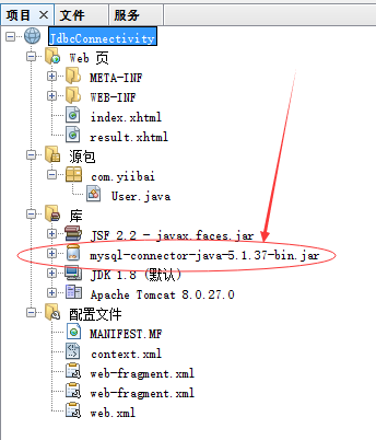 打開 NetBeans IDE,創(chuàng)建一個(gè)名稱為:JdbcConnectivity 的 Web 工程,其目錄結(jié)構(gòu)如下所示 -