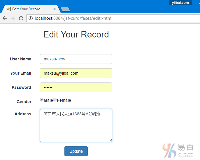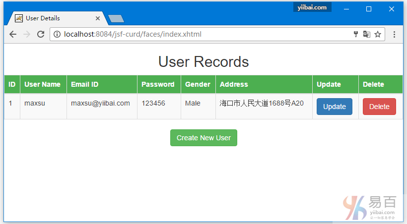 提交新的用戶信息,添加新記錄后,可以看到新用戶記錄如下 -