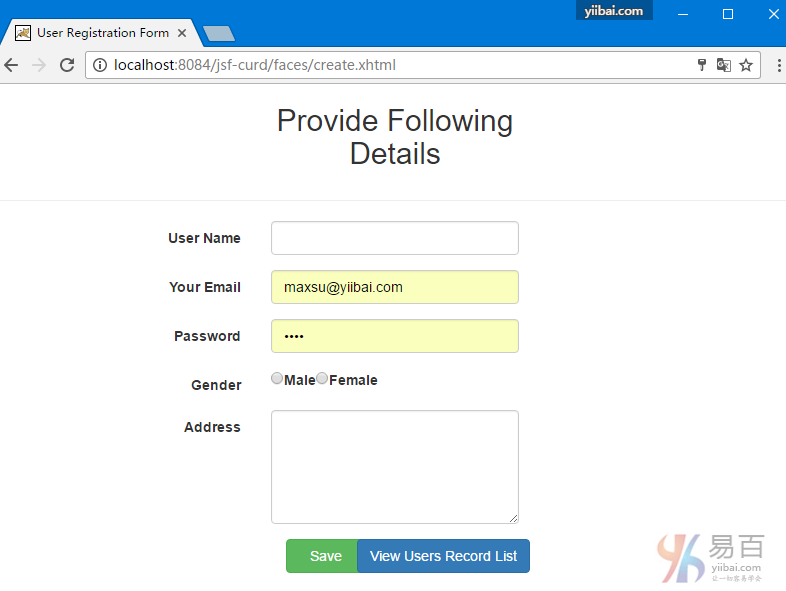 您可以通過使用此應用程序在用戶表中添加新的用戶記錄。