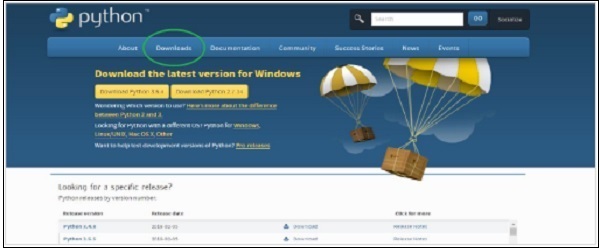 第1步 - 進入官方Python網(wǎng)站 https://www.python.org/ ,點擊下載菜單并選擇最新或任何穩(wěn)定版本。