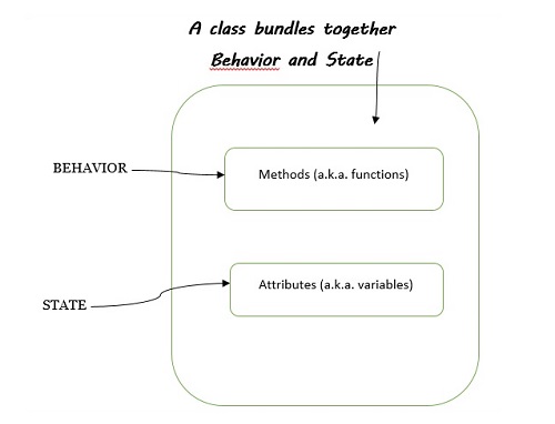 一個類將允許將對象的行為和狀態(tài)捆綁在一起。 觀察下圖以更好地理解 -