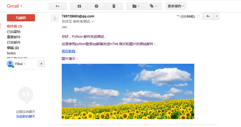 <p>這是使用python登錄qq郵箱發(fā)送HTML格式和圖片的測(cè)試郵件:</p>