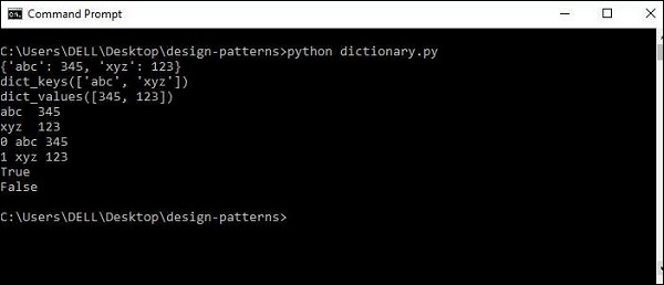 下面的程序展示了從Python創(chuàng)建到Python中字典的基本實現(xiàn)。