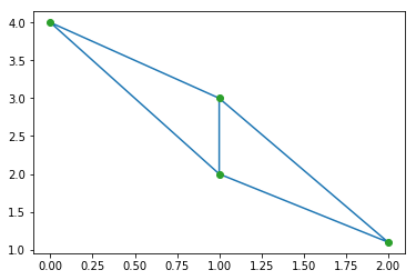 points = np.array([[0, 4], [2, 1.1], [1, 3], [1, 2]])
