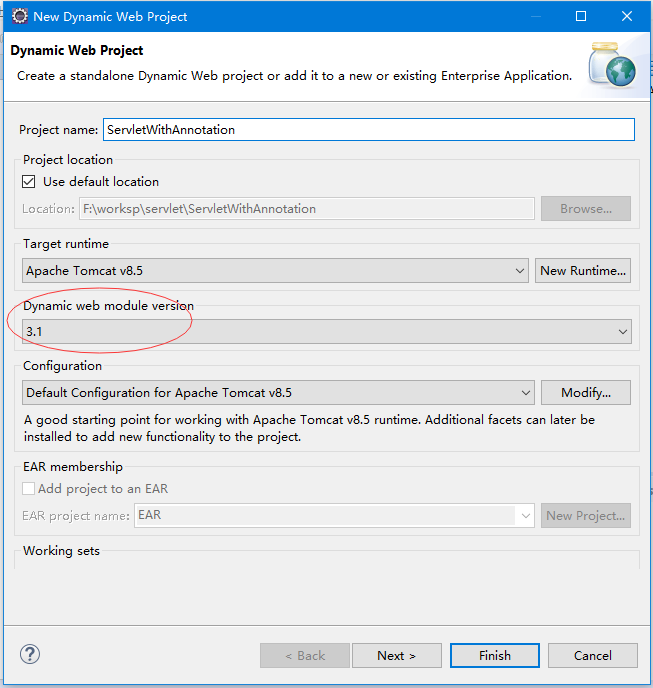 注意:創(chuàng)建項目選擇Dynamic web module version的版本是:3.0以上。