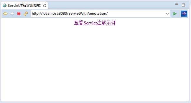 在編寫上面代碼后,部署此Web應(yīng)用程序(在項目名稱上點(diǎn)擊右鍵->”Run On Server…”),打開瀏覽器訪問URL: http://localhost:8080/ServletWithAnnotation/ ,如果沒有錯誤,應(yīng)該會看到以下結(jié)果 -