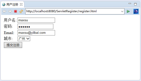 這是一個(gè)使用servlet實(shí)現(xiàn)用戶注冊(cè)示例