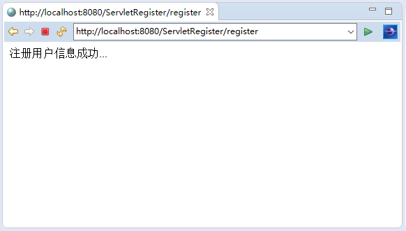 在編寫上面代碼后,部署此Web應(yīng)用程序(在項(xiàng)目名稱上點(diǎn)擊右鍵->”Run On Server…”),打開瀏覽器訪問URL: http://localhost:8080/ServletRegister/ ,如果沒有錯(cuò)誤,應(yīng)該會(huì)看到以下結(jié)果 -
