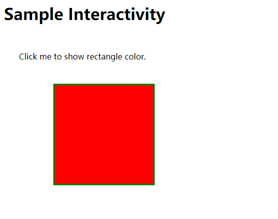 <text x="30" y="50" onClick="showColor()">Click me to show rectangle color.</text>