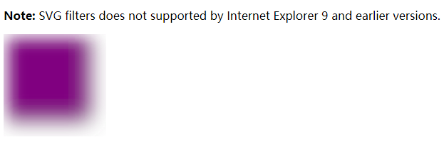 SVG使用<feGaussianBlur>元素來顯示模糊效果。 Internet Explorer 9和更早版本不支持SVG篩選器