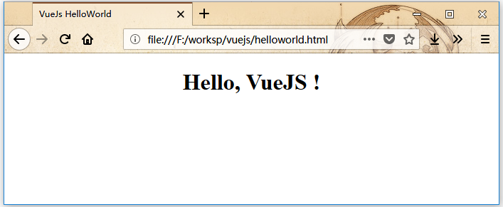 在目錄是:F:\worksp\vuejs 下,創(chuàng)建一個(gè)文件:helloworld.html ,代碼如下所示 -
