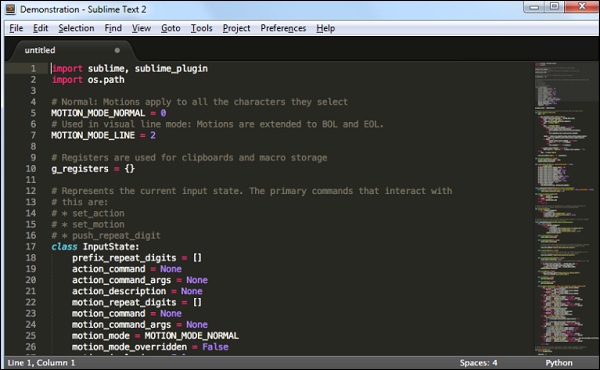 Text Sublime可以從 - http://www.sublimetext.com/ 下載。 這個(gè)編輯器中的文本根據(jù)其功能改變了參數(shù)的顏色。